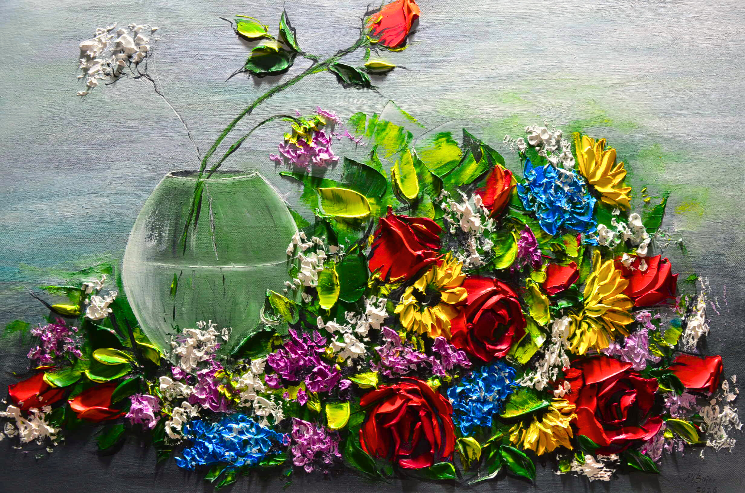 Original Textured Floral Painting by Polish Artist