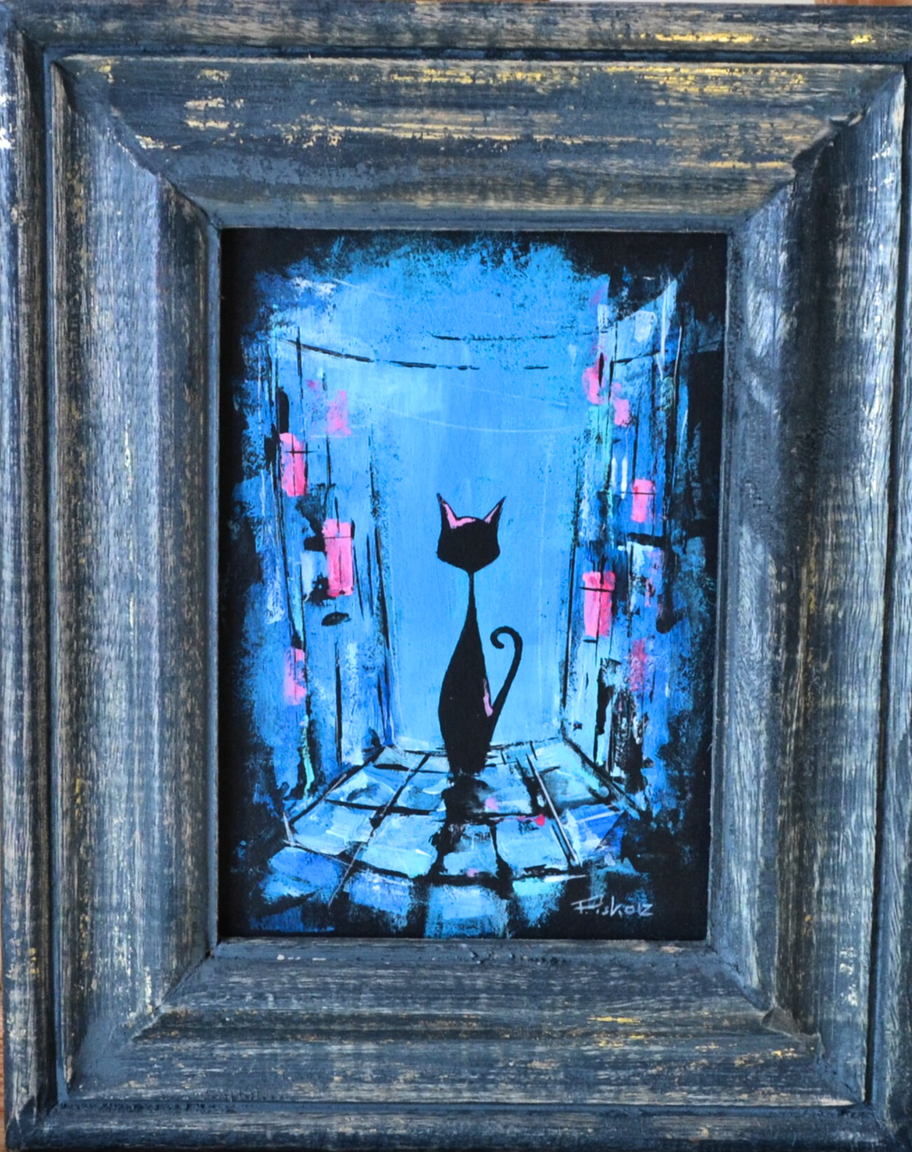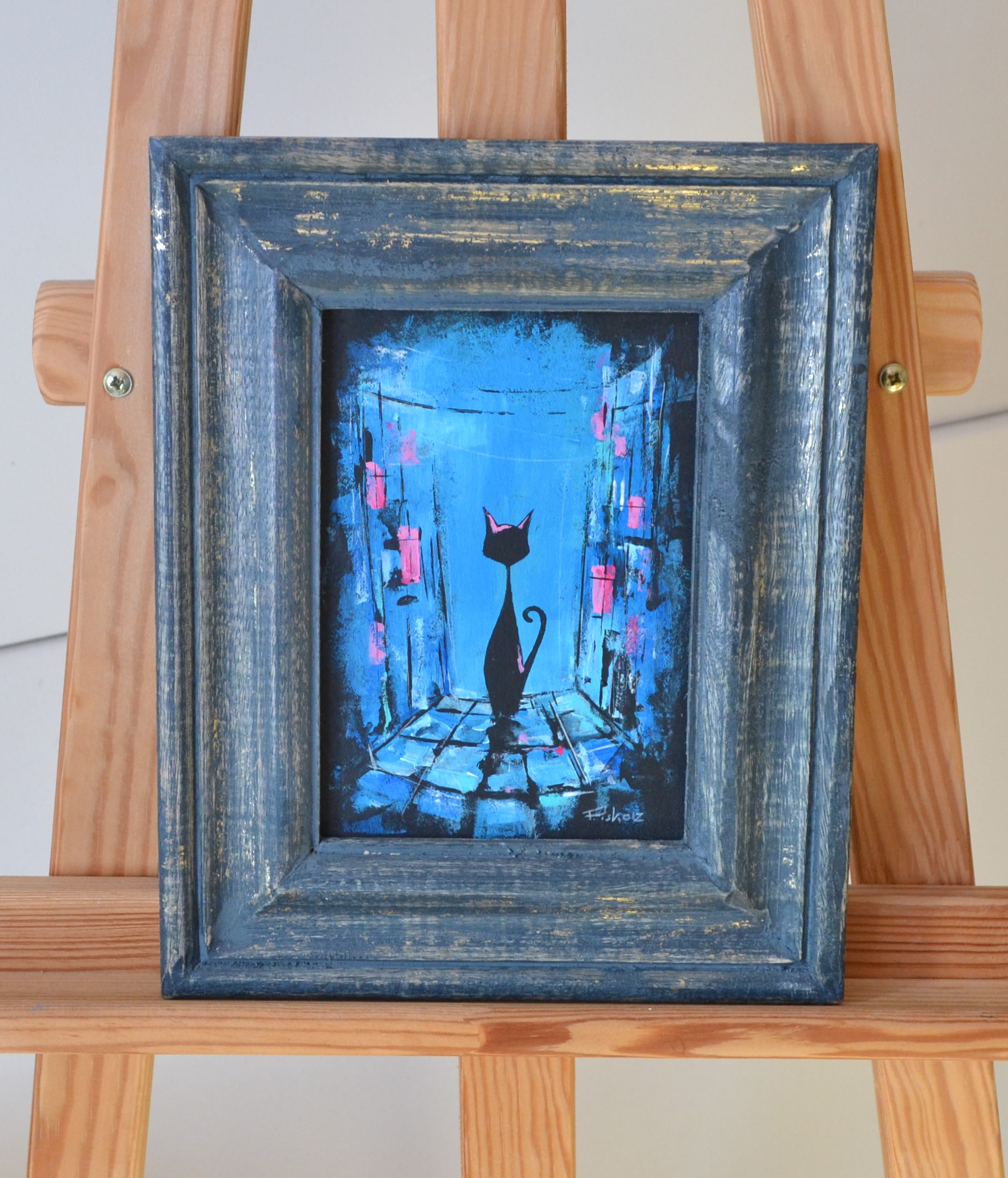 Small beautiful painting by well known artist. Framed in a unique handmade frame.