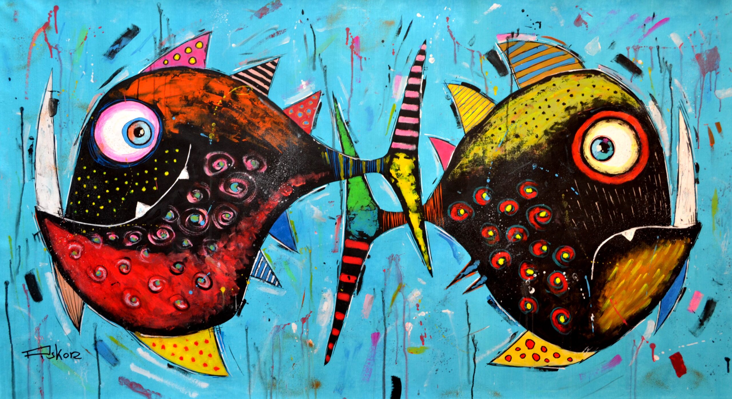 Original acrylic painting by well known artist. Unique piece of art. Piotr Piskorz is an established Polish contemporary artist. His works are appreciated in many countries. Size 158cm/82cm. Authentication: The painting bears the artist’s signature. It is accompanied by a hand-signed certificate of authenticity, affirming the quality and genuineness of the piece. Shipped rolled in a tube.