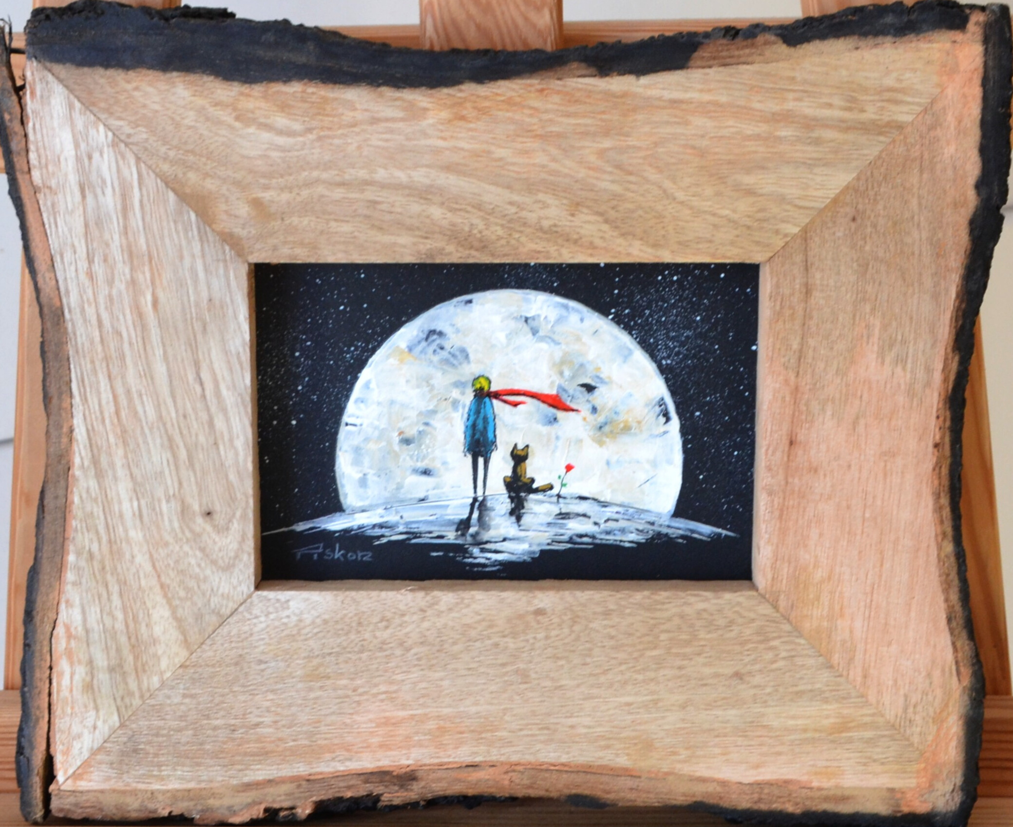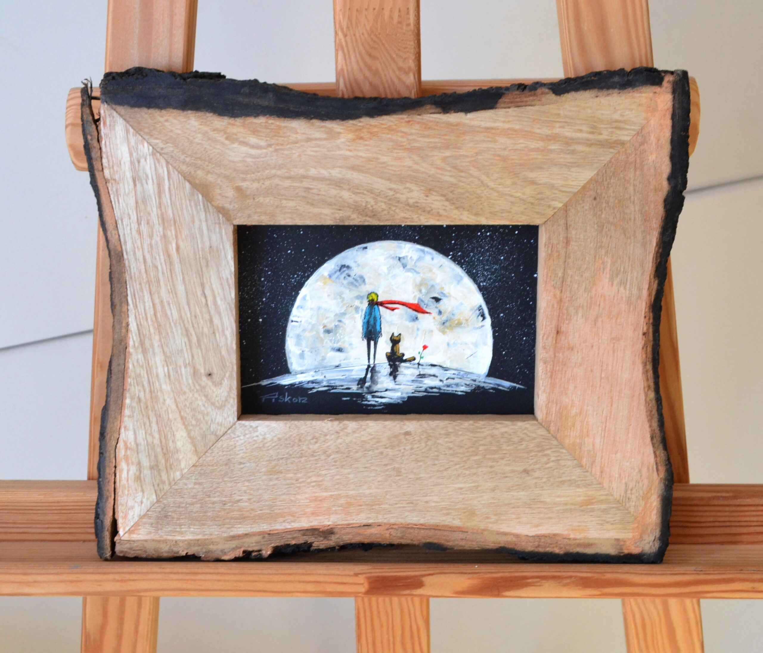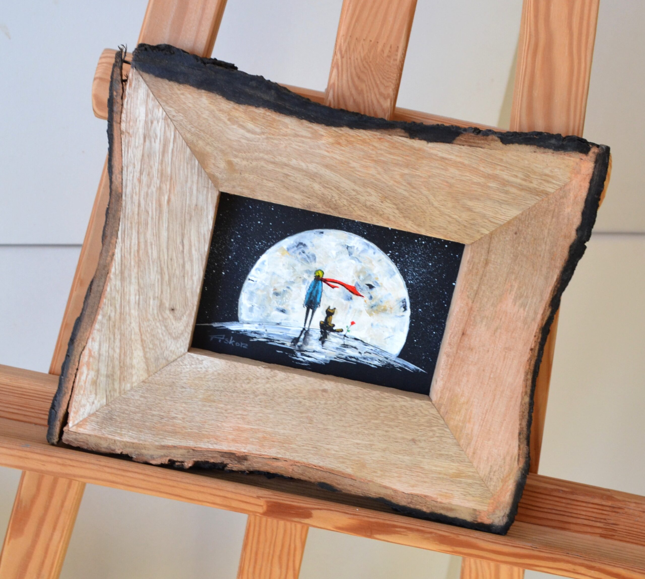 Small beautiful painting by well-known artist. Framed in a unique handmade frame. Acrylic on board.Size with the frame.25cm x 20cm