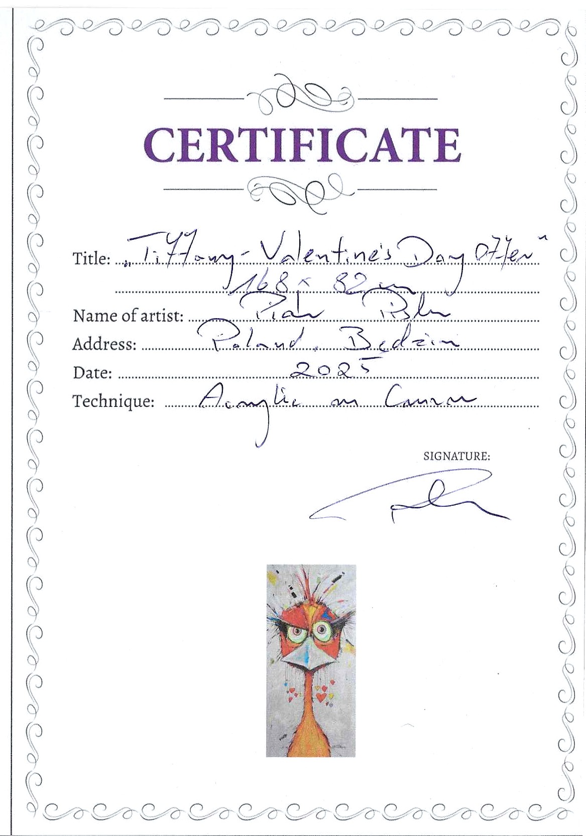 The painting bears the artist’s signature. It is accompanied by a hand-signed certificate of authenticity, affirming the quality and genuineness of the piece.