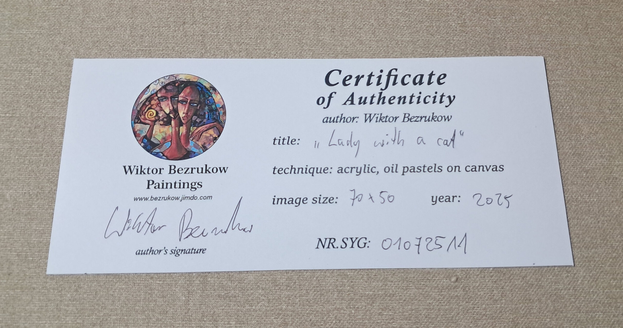 Additionally, the painting is signed on the back by an author – the title, a signature, a year, as well as the number of signature that matches the number on the certificate.