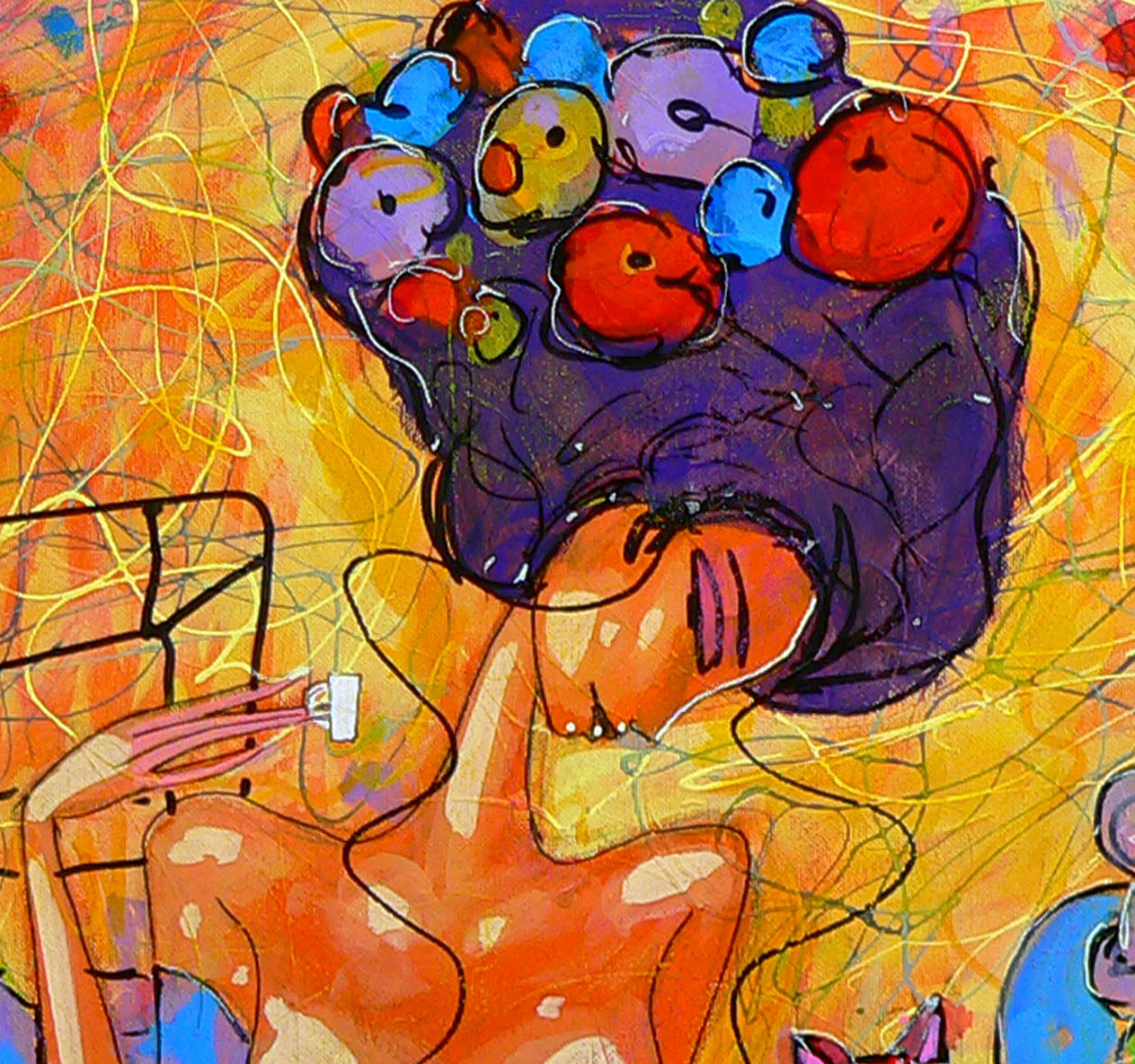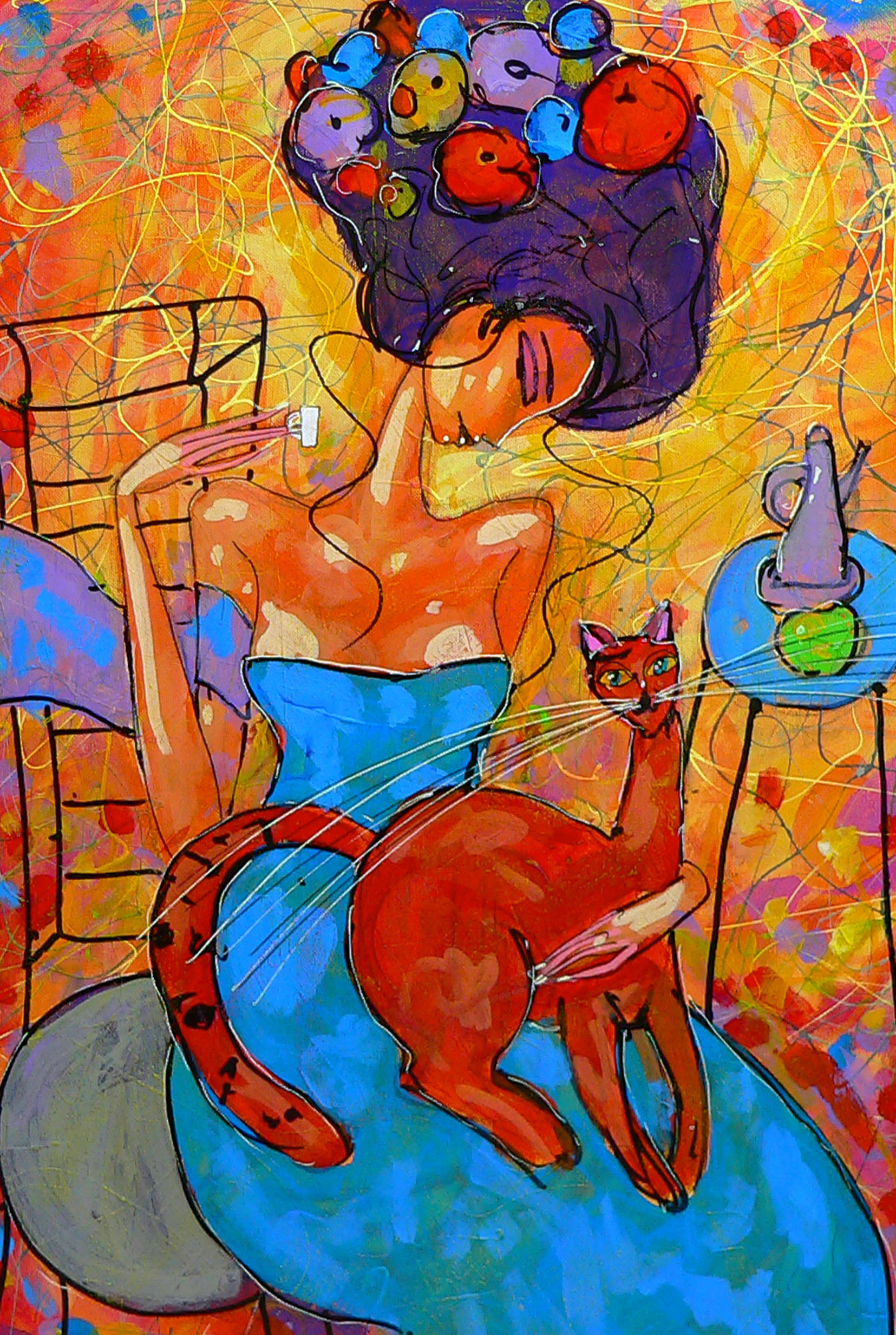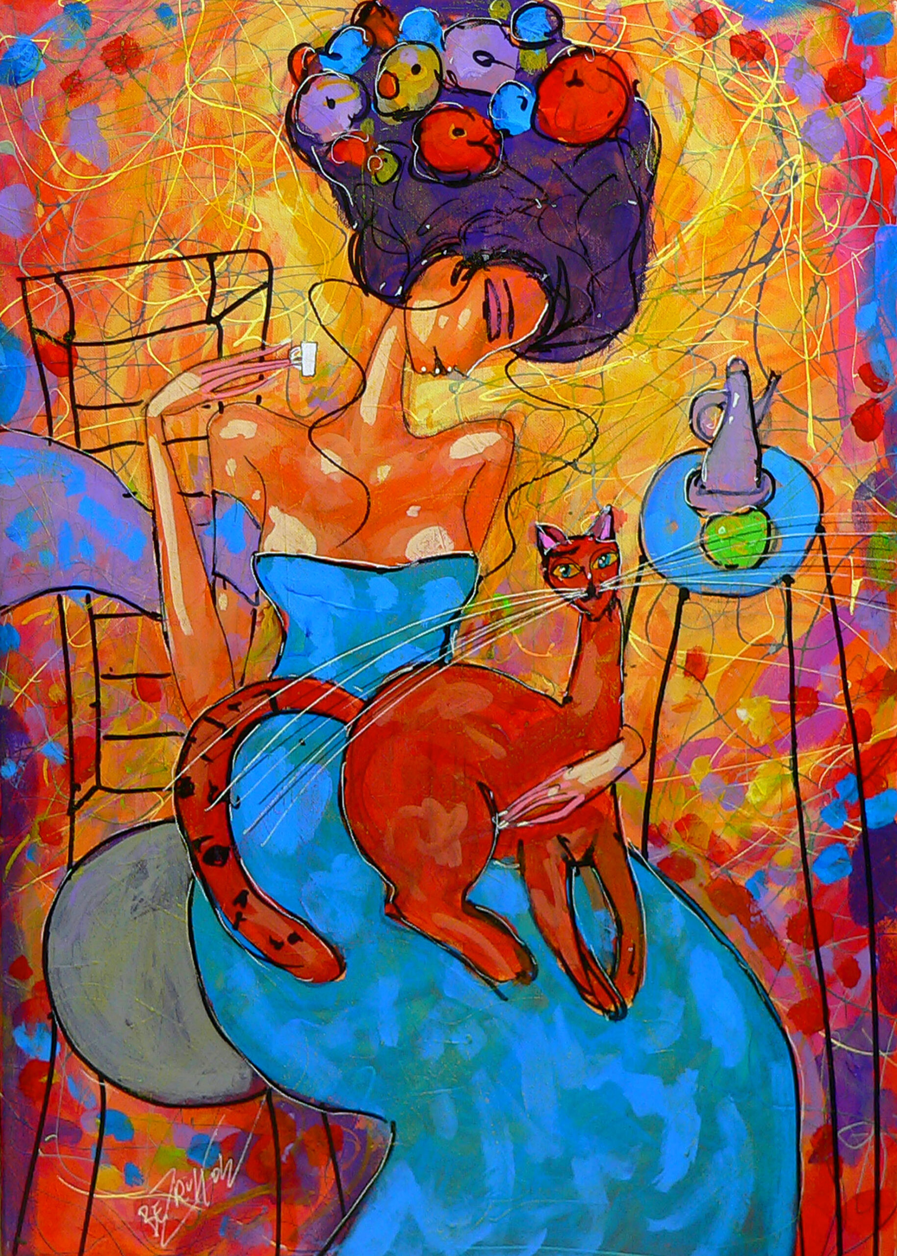 Acrylic/ oil pastels painting on canvas, stretched on a professional painting loom.